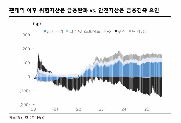 실제 코로나19 팬데믹 이후 금융환경지수는 장단기 금리 시장이 아닌 주식·회사채 등 위험자산 시장이 결정하는 구조로 바뀌었다.