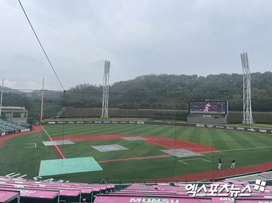 한편, 경기 개시를 약 2시간 반 앞둔 문수야구장엔 아주 가는 부슬비가 떨어지고 있다. 내야엔 각 베이스와 마운드를 덮는 방수포가 깔려 있다. 기상청 예보에 따르면 오후 5시부터 경기 직전까지 약한 비 예보가 있다.