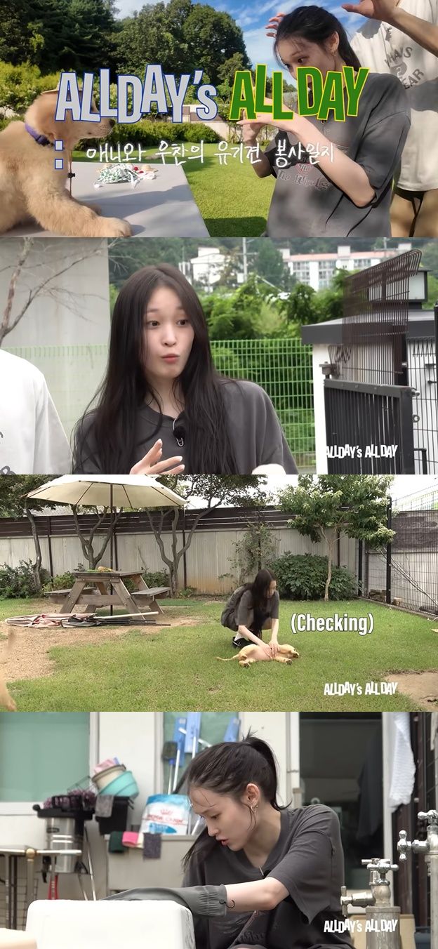 지난 24일 유튜브 채널 'ALLDAY PROJEC'에는애니가 멤버 우찬과 함께 유기견 봉사활동에 나선 영상이 공개됐다.