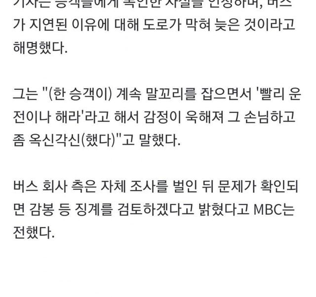 30분 늦은 버스에 항의하자 승객에게 쌍욕한 버스 기사
