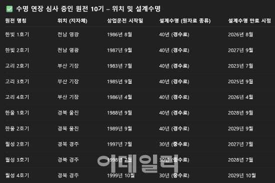 앞으로 원안위는 고리 2호기 이외에도 전남 영광 한빛 1·2호기, 부산 고리 3·4호기, 경북 울진 한울 1·2호기, 경북 경주 월성 2·3·4호기 등 노후 원전 9기의 수명연장 심사를 진행할 예정이다. 원자력 업계 관계자는 “고리 2호기의 계속운전이 불허되면 국가적 에너지 손실과 국민 전기요금 부담으로 직결된다”며 “이재명 정부에서 탈원전 시즌 2가 우려된다”고 전했다.