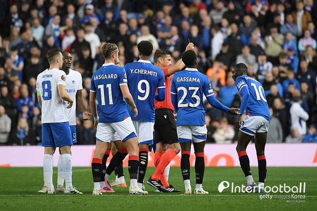 레인저스가 악재를 맞았다. 전반 41분 디오망데가 깊은 태클로 퇴장을 당했다. 10명의 선수로 경기를 치르게 된 레인저스는 수비에 치중하기 시작했다.