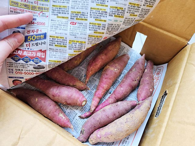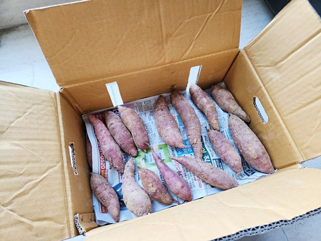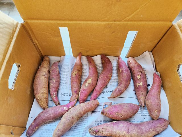 사실 고구마는 막 캐낸 후 바로 박스에 담겨오기 때문에