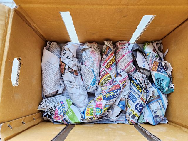 한줄 쌓을 때마다 신문지를 덮어주는 것만으로도 큰 도움이 돼요.