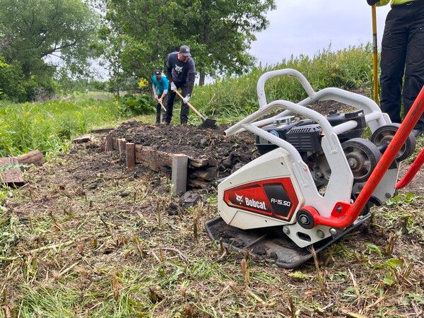 두산밥캣 미국 임직원들이 장비를 이용하여 환경정비를 하고 있다. /두산밥캣 제공