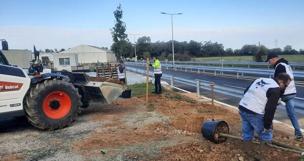 두산밥캣 프랑스 임직원들이 장비를 이용하여 도로 주변을 정비하고 있다. /두산밥캣 제공