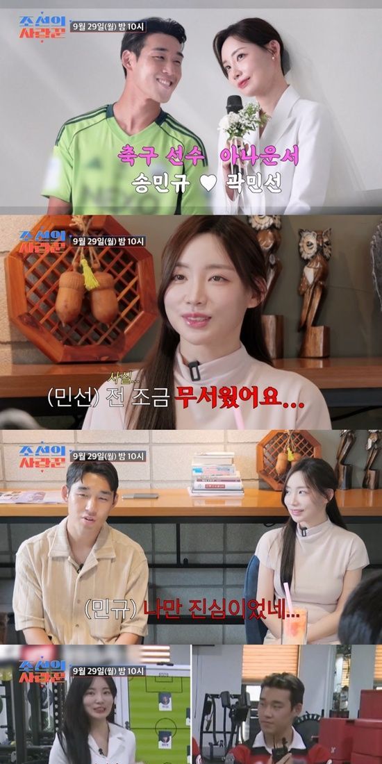 결혼을 앞둔 축구선수♥아나운서 3호 커플, 송민규♥곽민선의 러브스토리는 29일 오후 10시 방송되는 ‘조선의 사랑꾼’에서 본격 공개된다.