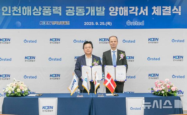 뉴시스 보도에 따르면, 남동발전은 지난 25일 경남 진주 본사에서 오스테드와 인천 연안에서 약 70㎞ 떨어진 해상에 조성될 1.4GW 규모의 인천해상풍력 공동개발을 위한 양해각서(MOU)를 체결했다고 26일 밝혔다.