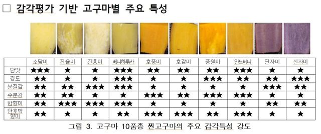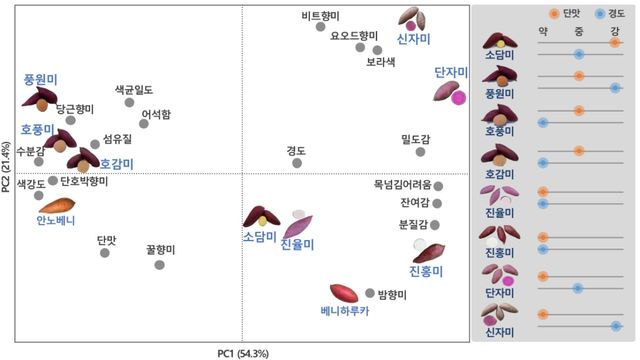 찐 고구마의 맛을 품종별로 한눈에 확인할 수 있는 지도가 만들어졌다.