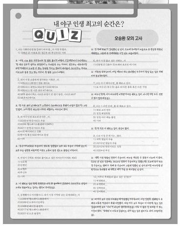 오 : 야구긴 한데, 다시 야구하면 이번엔 타자를 해보고 싶다. 아니면 선발 투수. 잘할 수 있지 않을까(웃음).