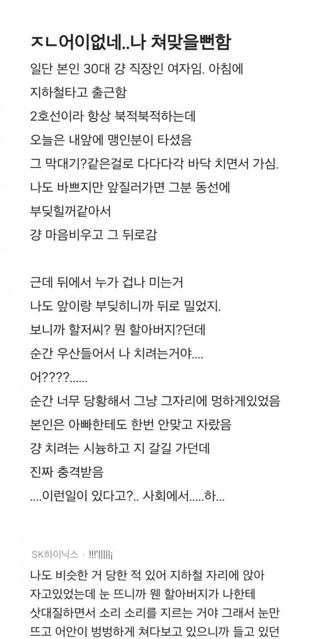 지하철에서 맞을뻔했어...ㅠㅠ
