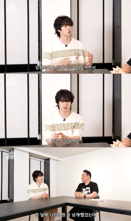 그는 "강원도에서 아르바이트하면서 공장에서 잔업까지 하고 야간 수당 하면 한 달에 120만원 조금 넘게 버는데, 19살에 그만큼을 버는 것도 되게 큰 돈이었다"고 이야기했다.