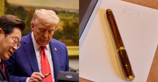 실제로 정상회담 현장에서 트럼프 대통령은 이 대통령이 방명록을 작성하는 모습을 유심히 바라보다 “그 펜이 마음에 든다. 두께가 아름답다”며 관심을 보였다. 이어 “그 펜을 가져가도 되느냐”고 묻자 이 대통령이 웃으며 손짓으로 허락하는 장면이 포착되기도 했다. 트럼프 대통령이 평소에도 두꺼운 수성펜을 즐겨 쓰는 것으로 알려지면서 화제가 더 커졌다.