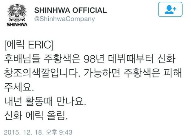 신화 팬덤 신화창조 : 주황색 미쳤냐? 우리오빠들 색이라고!!