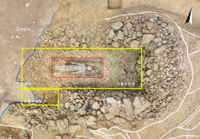 조사단에 따르면 이번 발굴에서는 6세기 초로 추정되는 돌무지덧널무덤(적석목곽분) 3기를 비롯해 옹관묘 2기, 목관묘 1기 등이 확인됐다.