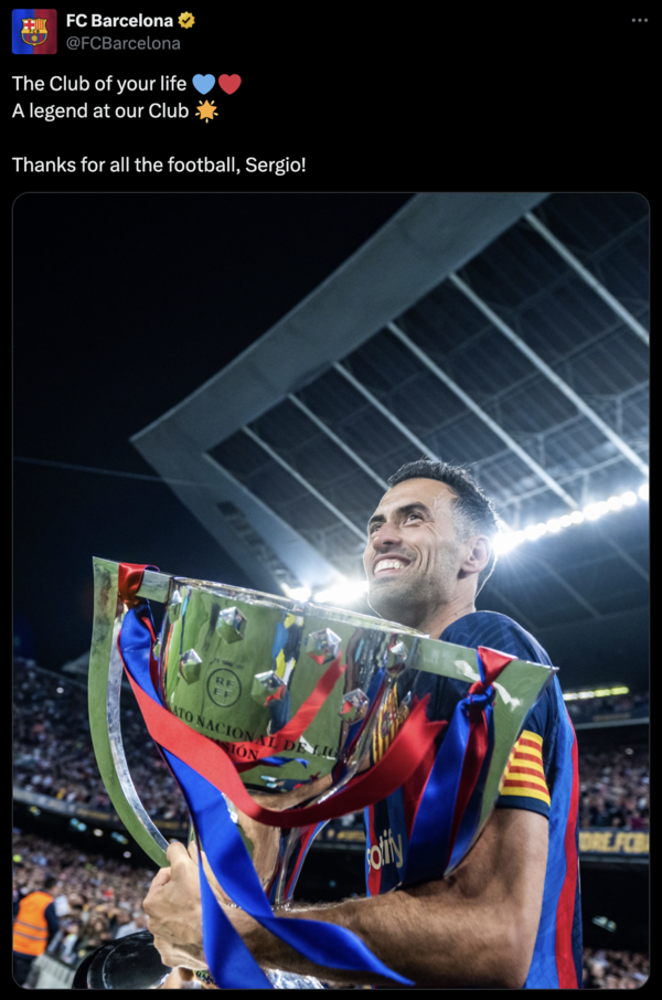 바르셀로나도 전설의 퇴장에 박수를 보냈다. 바르셀로나는 공식 SNS를 통해 “당신의 인생 클럽, 우리 팀의 전설”이라며 부스케츠에 대한 존경을 드러냈다.