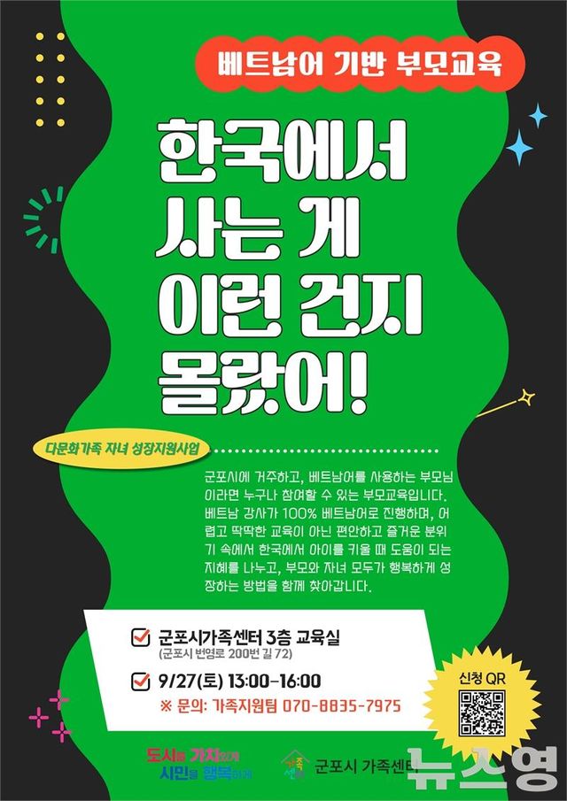 군포시가족센터 관계자는 “이번 부모교육은 베트남 부모님들이 모국어로 자녀 양육의 고민을 나누고, 존중하는 양육 방법을 함께 모색할 수 있다는 점에서 의미가 크다”며 “앞으로도 다양한 문화적 배경을 고려한 맞춤형 부모교육을 확대해 나갈 것”이라고 전했다.