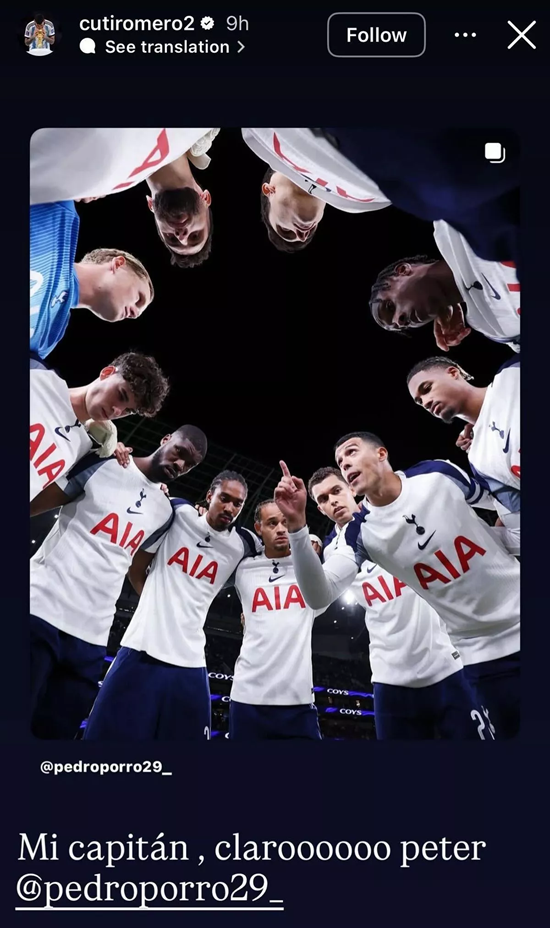포로 또한 "주장 완장을 차게돼 매우 기쁘고 자랑스럽다. 또 한 번 클린시트를 기록하고 다음 라운드에 진출했다. 항상 응원해 주시는 토트넘 팬 여러분께 감사드린다"라고 글을 올렸다. 여기에는 사비 시몬스, 제드 스펜스, 케빈 단소 등 여러 동료들이 '좋아요'를 눌러 포로를 지지한 것으로 알려졌다.