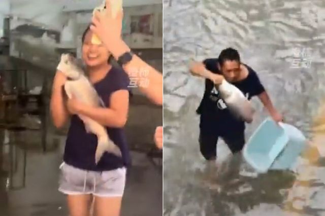 현지 소셜미디어에 올라온 영상에는 무릎 높이까지 물이 찬 도심에서 주민들이 그물, 어망, 심지어 가방까지 활용해 물고기를 잡는 장면이 담겼다. 일부는 인큐베이터 같은 황당한 도구를 들고 나오기도 했다.