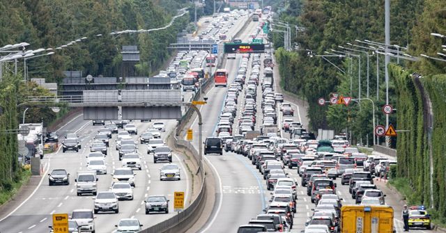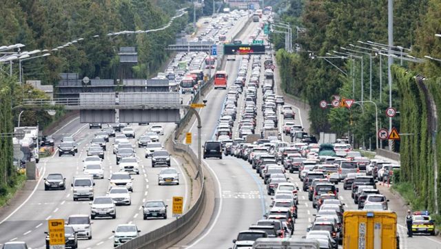 서울 서초구 경부고속도로 잠원 IC 인근 하행선에 차량행렬이 꼬리를 물고 있다. / 뉴스1