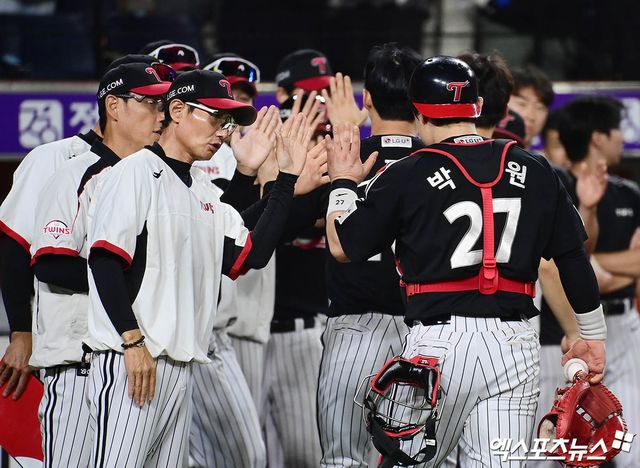 염경엽 감독이 이끄는 LG는 27일 대전 한화생명 볼파크에서 열린 2025 신한 SOL Bank KBO리그 2위 한화 이글스와의 원정경기에서 9-2로 승리했다. 이날 승리로 시즌 전적 85승53패3무를 만든 LG는 한화(81승56패3무)와의 경기 차를 다시 3.5경기로 벌리며 매직넘버를 '1'까지 줄였다.