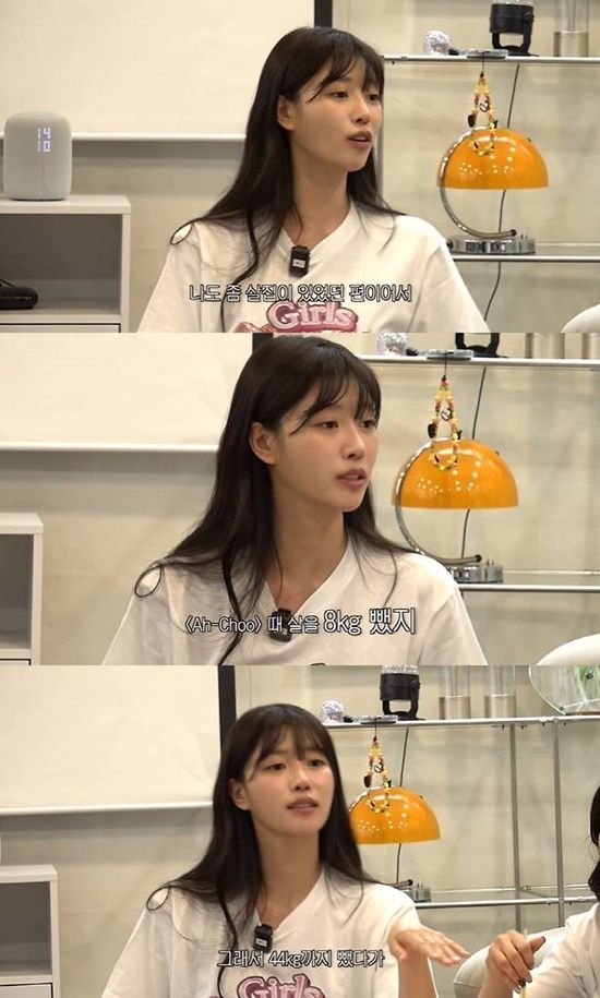 이미주는 "사실 나도 '캔디 젤리 러브' 활동 때는 살집이 있던 편이다. 그 옷들이 겨우 맞았다. 그 때 충격을 받아서 '아츄(Ah-Choo)' 때는 8kg나 살을 뺐었다. 그렇게 44kg까지 뺐다가 46kg까지 다시 쪘었다"고 고백했다.