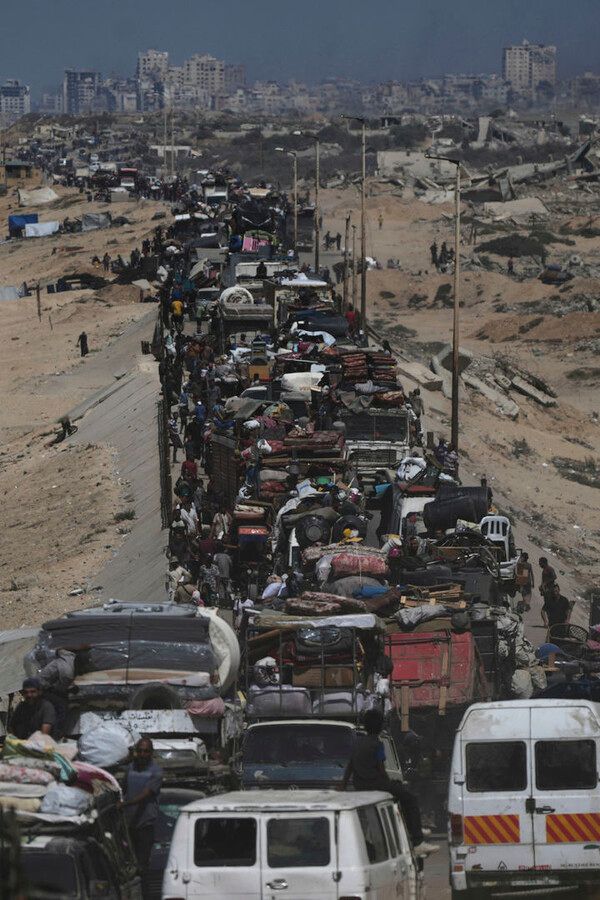 이스라엘 카츠 이스라엘 국방장관은 27일(현지시간) 가자시티에 대한 이군의 군사 작전 강화 이후로 시내에서 도망쳐 나간 팔레스타인 주민들이 75만 명에 이르렀다고 발표했다. 이틀 전 발표보다 5만 명이 늘어났다.
