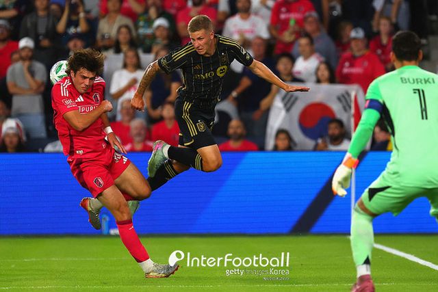 LAFC가 분위기를 끌어 올렸다. 전반 35분 스몰야코프가 높은 위치까지 올라가서 중거리 슈팅을 때렸다. 높게 떴다.