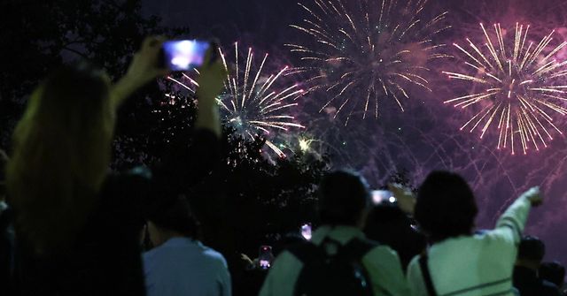 지난 27일 서울 여의도 한강공원 일대에서 열린 '2025 서울세계불꽃축제'에서 시민들이 화려한 불꽃쇼를 보고 있다. / 뉴스1