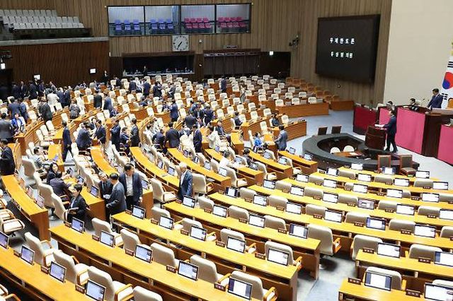 더불어민주당과 조국혁신당 등은 이날 오후 국민의힘의 필리버스터를 종료하고 국회법 개정안을 표결에 부쳤다. 필리버스터는 개시 후 24시간이 지나면 재적 의원 5분의 3 이상(현재 179명)의 동의를 거쳐 종결할 수 있다.