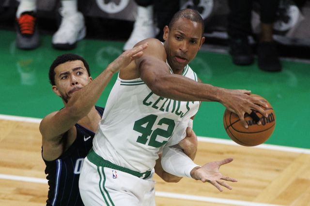 epa12050357 Orlando Magic guard Kentavious Caldwell-Pope (L) and Boston Celtics center Al Horford (R) reach for the loose ball during the first quarter of the Eastern Conference First Round playoff game two between the Boston Celtics and the Orlando Magic in Boston, Massachusetts, USA, 23 April 2025. EPA/CJ GUNTHER SHUTTERSTOCK OUT/2025-04-24 09:28:01/