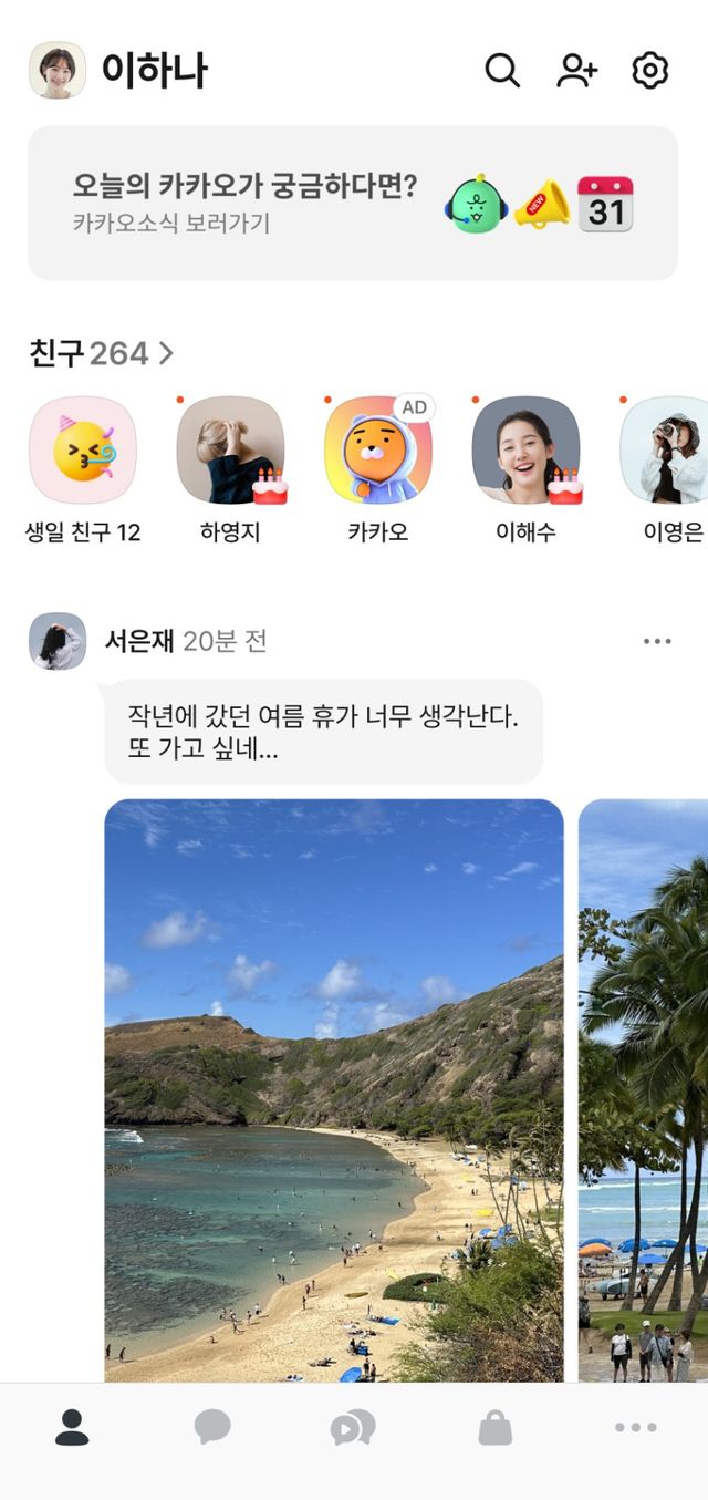 이 여성들은 갑자기 바뀐 카톡이 적응되지 않는다고 입을 모았다. 특히 프로필을 수정하면 타임라인 피드로 보여주는 친구 탭을 두고 “내 사진을 대문짝만하게 보여주는 게 불편하다”, “끄고 켜는 기능이 없는 건 이미 광고를 받아버렸기 때문인가”, “눌러서 보는 숏폼과 달리 친구 탭은 선택권도 없다”는 반응을 보였다.