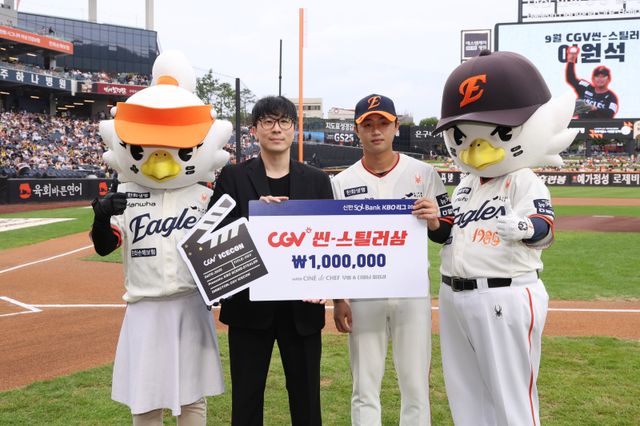 한편 KBO와 CGV는 지난 27일 대전 한화생명 볼파크에서 경기 전 시상식을 진행했으며, 이원석에게는 상금 100만원 및 CGV 씨네드쉐프 무비&다이닝 패키지가 부상으로 수여됐다.