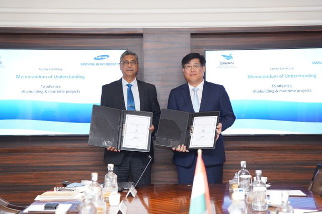 '스완' 조선소는 초대형 유조선(VLCC)·해양 설비 건조가 가능한 인도 최대 규모의 드라이 도크(662ⅹ65m)를 갖추고 있어 삼성중공업은 신조 선박 설계·구매·생산관리(EPM), 해양 프로젝트 분야로 협력을 모색해 나가기로 했다.