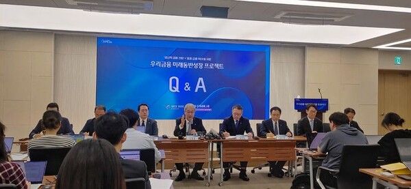 뉴시스 보도에 따르면, 우리금융그룹은 29일 오전 서울 회현동 본사에서 '미래동반성장 프로젝트 최고경영자(CEO) 합동 브리핑'을 개최했다. 브리핑에는 임종룡 우리금융지주 회장과 정진완 우리은행장을 비롯해 우리투자증권 남기천, 보험(ABL) 곽희필, 저축은행 이석태, 자산운용 최승재, 벤처파트너스 김창규, PE 강신국 등 자회사 CEO가 참석했다.