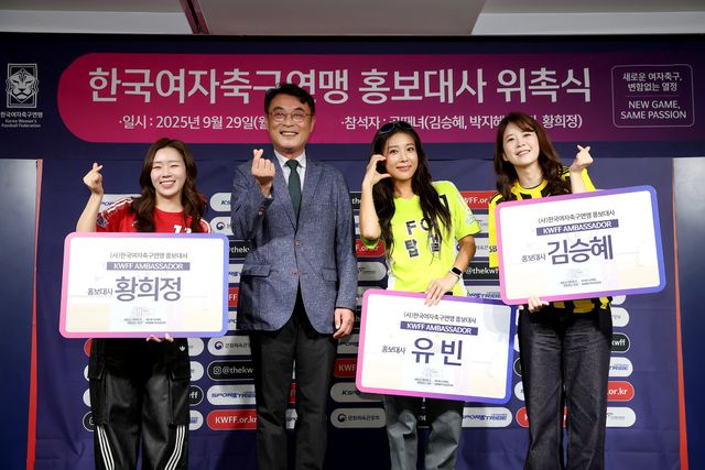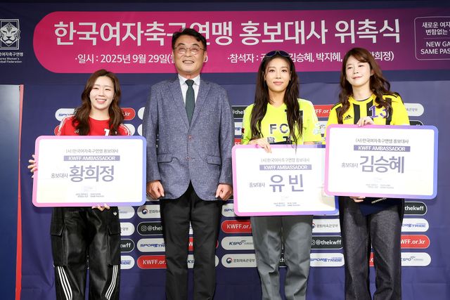 인기 축구 예능 '골 때리는 그녀들'에 출연해 프로그램의 흥행을 이끌며 여자축구의 인기를 높인 개그우먼 김승혜, 아나운서 박지혜, 가수 유빈, 황희찬 소속사 비더에이치씨의 황희정 대표가 한국여자축구연맹의 미디어 앰버서더로 새롭게 위촉됐다.