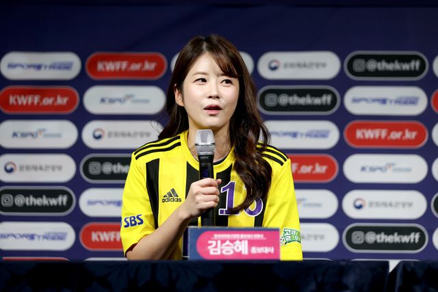 김승혜: '골때녀'를 하다 보니 원래도 축구를 좋아했지만, 축구를 하는 게 재밌다는 것을 느꼈다. 축구에 대한 흥미도 생겼고, 여자축구를 직접 보러 갈 정도로 열정이 불타올랐다. 이번에 좋은 기회로 홍보대사가 되어서 기쁘다. SNS나 직접 축구를 보러 가는 등 진정한 홍보대사가 될 수 있도록 하겠다.