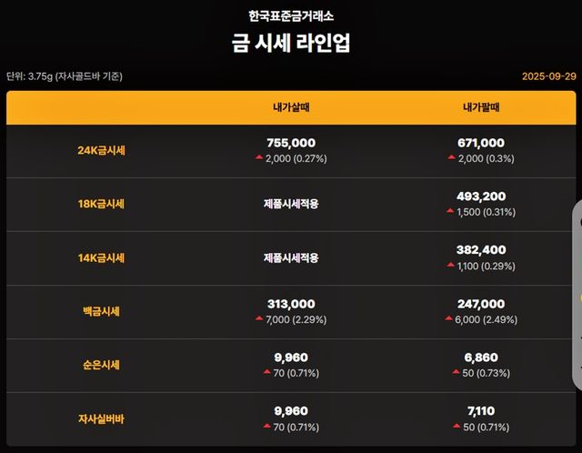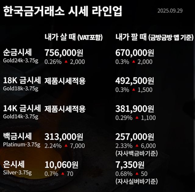 순금(24K) : 매입가 75만 원 / 매도가 68만 5000원