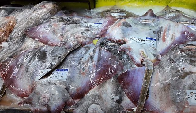 해망동 위판장에선 홍어 경매가 한창이었다. 암컷 홍어는 큰 것이 1kg당 1만 원 이상에 거래됐다. 5kg 이상은 한 마리씩 따로 담아 판매됐다. 9kg짜리는 1kg당 1만5000원에 거래됐다. 5kg 미만은 20kg씩 묶여 거래됐다. 한 관계자는 "가을에는 수컷을 선호한다"며 "지금은 수컷에 살이 찼다"고 설명했다.