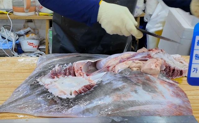 요즘 군산시수산물종합센터가 전국적 주목을 받는 데는 홍어의 역할이 크다. 영상에 따르면 이날에만 비응항·해망동 위판장에서 참홍어 1000상자가 경매됐다. 군산시수산물종합센터에 입점한 가게마다 참홍어를 쫙 깔고 장사를 할 정도로 홍어가 넘쳐났다. 군산 앞바다는 흑산도와 함께 홍어의 주요 어장으로 꼽힌다.