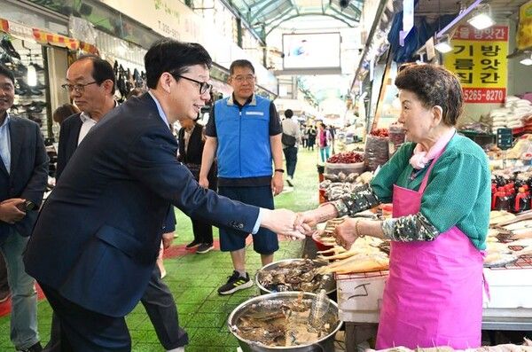 박 차관은 이번 방문을 통해 추석 음식 농수산품의 물가 동향을 파악하고 상인들과 전통시장 활성화에 대한 의견을 교환했다. 또 최근 가계 소비 감소 등으로 어려움을 겪고 있는 상인들의 애로사항을 청취했다.