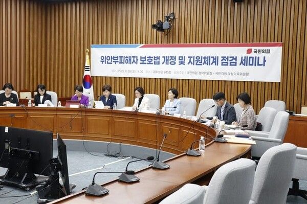 국민의힘 정책위원회와 여성가족위원회는 29일 '위안부 피해자 보호법 개정 및 지원체계 점검 세미나'를 열고 국회에 계류 중인 '위안부 피해자 보호법' 개정안을 논의했다.