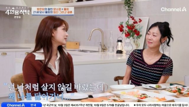 율희는 29일 방송된 채널A ‘절친 토큐멘터리 4인용식탁’에 게스트로 출연해 “제가 결혼한 지 얼마 되지 않았을 때 방은희의 이혼 기사가 나왔다”며 “너무 엄마처럼 챙겨주셨기 때문에 연락을 드리고 싶었다”고 말했다.