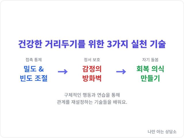 건강한 거리두기는 막연한 다짐이 아니라, 구체적인 행동과 연습을 통해 습득하는 기술이다. 당신의 일상에서 지금 바로 적용할 수 있는 세 가지 핵심 기술은 다음과 같다.