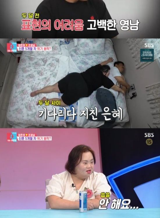정은혜는 "오빠와 대화가 부족하다고 생각한다. 그냥 오빠와 개인적인 얘기를 나누고 싶다"고 바람을 전했고, 정은혜의 엄마는 "은혜가 사위한데 '나 예뻐요? 나 사랑해요?' 이런 걸 자주 물어본다. 사위의 사랑의 감정을 확인하고 싶어한다"고 덧붙였다.
