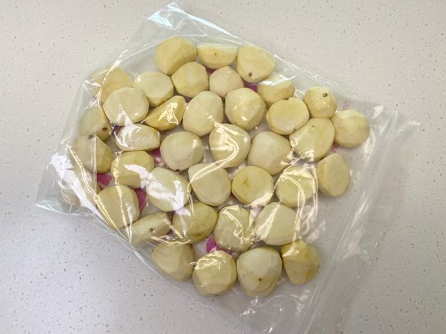 지퍼백에 깐밤을 최대한 겹치지 않게 담고요.
