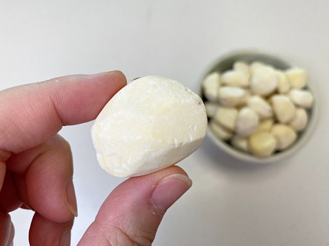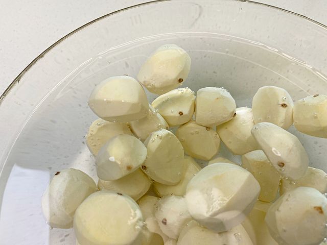 여기에 껍질 깐 밤을 퐁당- 담가요.