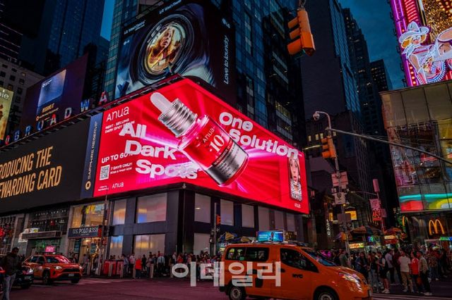 또 아누아는 세계 최대 옥외 광고 명소인 미국 뉴욕 타임스퀘어에 전광판을 설치했다. 미국 동·서부 핵심 거점에서 브랜드의 존재감을 알리기 위해서다. 이를 통해 아누아가 K뷰티를 넘어 글로벌 대표 스킨케어 브랜드로 도약하는 발판을 마련했다는 평가다.