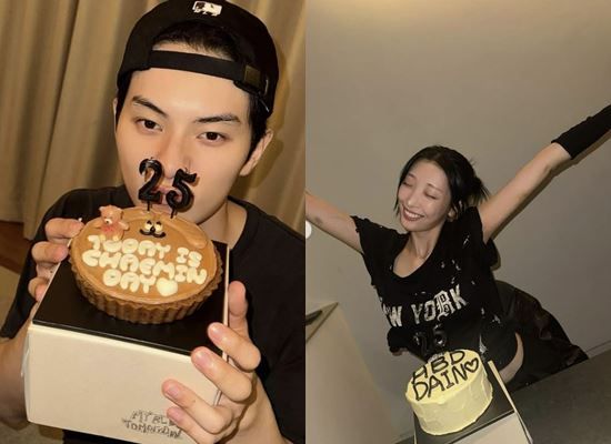 류다인과 마찬가지로 최근 생일을 맞은 이채민은 'TODAY IS CHAEMIN DAY ♥'라는 문구가 쓰인 케이크를 들고 인증샷을 공개했다. 류다인의 케이크와 같은 베이커리에서 만든 케이크로, 숫자 초 역시 똑같다.