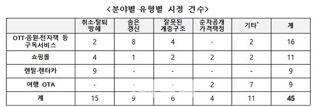 다크패턴 유형별로는 취소·탈퇴 방해가, 분야별로는 OTT·음원·전자책 등 구독서비스에서 의심사례가 가장 많이 나타났다.